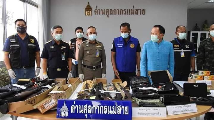 ထိုင်းအကောက်ခွန်အဖွဲ့မှသတင်းအရ သွားရောက်စစ်ဆေးရာ လက်နက်ခဲယမ်းများတင်ဆောင်လာသည်ကိုစစ်ဆေးတွေ့ရှိခဲ့ ။