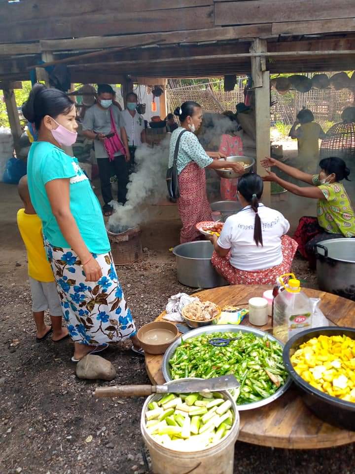 မဲ့ကိုကင်းတွင် စစ်ဘေးရှောင်သူတို့အား ချက်ပြုတ်ကျွေးမွေးသည့်MRPWGအဖွဲ့သားအချို့