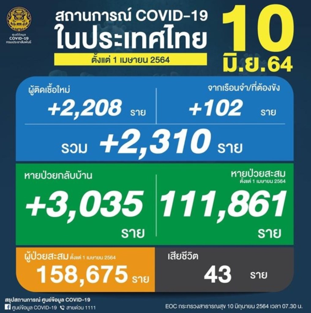 On June 10, 2021, the Center for Covid-19 Situation Administration (CDC) reported the epidemic situation of COVID-19. daily as follows