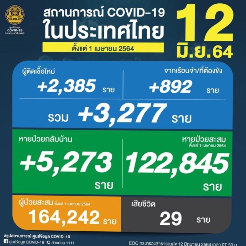 Prof. reveals that Thailand has 3,277 more covids, 29 more deaths, while 5,273 more recovered.