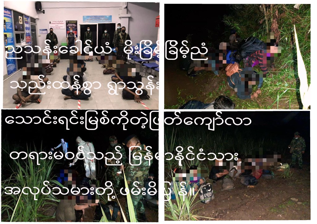 ထိုင်းမြန်မာနယ်စပ် မဲဆောက်မြို့လုံခြုံရေးစောင့်ကြပ်နေသော အထူးလှုပ်ရှားရေးတပ်ဖွဲ့ ၊ အမှတ် ၄ ခြေလျင်တပ်ရင်းနှင့် နယ်မြေလုံခြုံရေး စစ်သားများ၊ တို့သည် နယ်စပ်တလျှောက်တရားမဝင် ကုန်သွယ် ကူးသန်းခြင်း ကင်းစင်စေရေးအတွက် ကင်းလှည့်နေစဉ် တာ့ခ်ခရိုင်၊ မဲဆောက်မြို့နယ် သောင်းရင်းမြစ်ကို ကျော်ဖြတ်၍ တရားမဝင် နယ်စပ်ဖြတ်ကျော် ဝင်ရောက်လာသည့် မြန်မာနိုင်ငံသား ၁၇ ဦး (အမျိုးသား ၁၂ ဦးနှင့်အမျိုးသမီး ၄ ဦး မိဘနှင့်အတူ လိုက်ပါလာသည့်ကလေး ၁ ဦး) တို့သည် ညသန်းခေါင်ယံ မိုးရွာ သွန်းနေသည့်ကြားက သောင်းရင်းမြစ်ကိုကျော်ဖြတ်ပြီး သဘာဝ တောလမ်းအတိုင်း ထိုင်းသို့ ခိုးဝင်လာခဲ့သည်ကို အာဏာပိုင်များကဖမ်းဆီးရမိခဲ့သည်။ တရားမဝင် နယ်စပ်ဖြတ်ကျော်ဝင်လာသည့် နိုင်ငံခြားသား အလုပ်သမား ၁၇ ဦးတို့သည့် မည်သည့် စာရွက်စာတမ်းမျှ ကိုင်ဆောင်လာခြင်းမရှိ ၄င်းတို့ကို ကျန်းမာရေးဆိုင်ရာ စစ်ဆေးခြင်းလုပ်ငန်းစဉ်အတိုင်း အပူချိန်တိုင်းတာခြင်း လိုအပ်သည်များကိုစီစဉ်ဆောင်ရွက်ပေးပြီးနောက်လူဝင်မှုကြီးကြပ်ရေး ရုံးတွင်ဖမ်းဆီးထိန်းသိမ်းထားပြီး သက်ဆိုင်သည့်ဌာန များမှတဆင့် ဆိုင်ရာအရေးယူဆောင်ရွက်မှု ဆက်လက်လုပ်ကိုင်နိုင်ရန် လွှဲပြောင်းပေးအပ်ခဲ့သည်။ ယခုအချိန်အတောအတွင်း တရားမ၀င် နယ်စပ်ဖြတ်ကျော်ဝင်ရောက်လာမှု ကင်းစင်ရေး ကူးစက်ရောဂါကိုရိုနာဗိုင်းရပ်စ် Covid-19 ကာကွယ်တားဆီးရေး နှင့်တရားမဝင် ကုန်သွယ်မှောင်ခိုတင်သွင်း နေကြသည်ကို မကြာခဏဆိုသလို ဖမ်းဆီးရမိကြောင်း ထိုကြောင့် နေ့ ရော ညပါ နယ်စပ်လုံခြုံရေးကို အထူးစစ်ဆင်ရေးအဖြစ်လုပ်ဆောင်လျှက်ရှိသည်ဟု အာဏာပိုင်များကဆိုပါသည်။