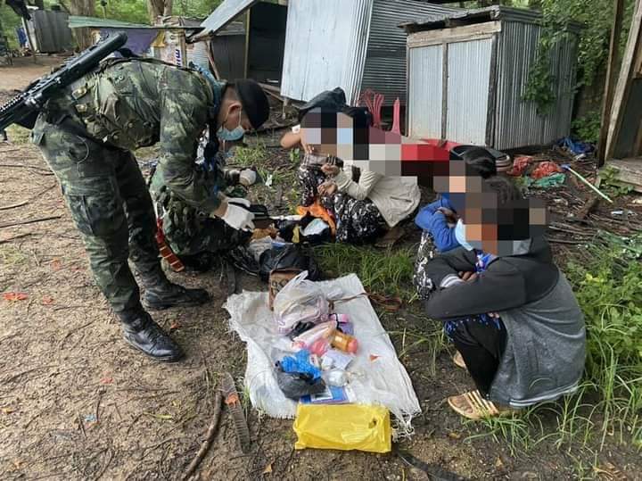 Earlier this morning (25 June 2021), Tak = soldiers. Snatch Kor Kor. 4 arrested 2 Myanmar women smuggling into the city.