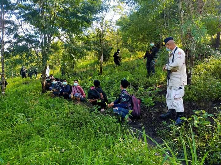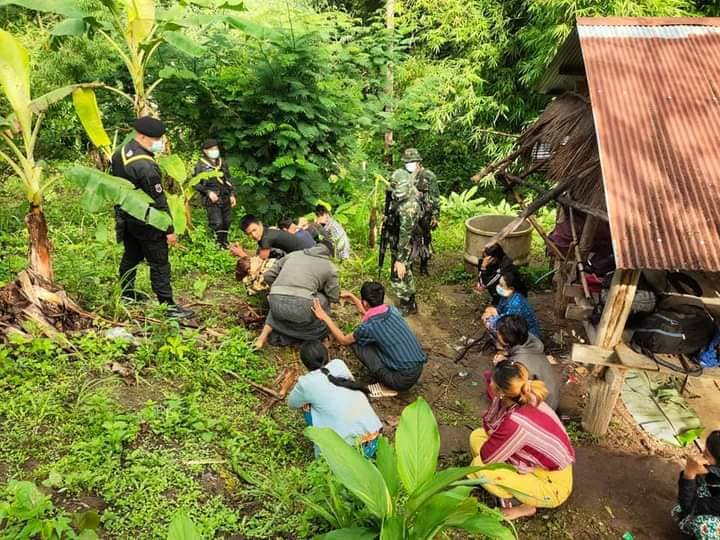 Let’s House Intercept Operation Set therefore organized forces together with Long Range Reconnaissance Battalion Operations Set Naresuan Force therefore came to inspect the said area Meet a group of foreigners from Myanmar Sitting in a hut at the end of the rice field, 15 people, 9 males, 6 females, along with their belongings, were identified and searched.