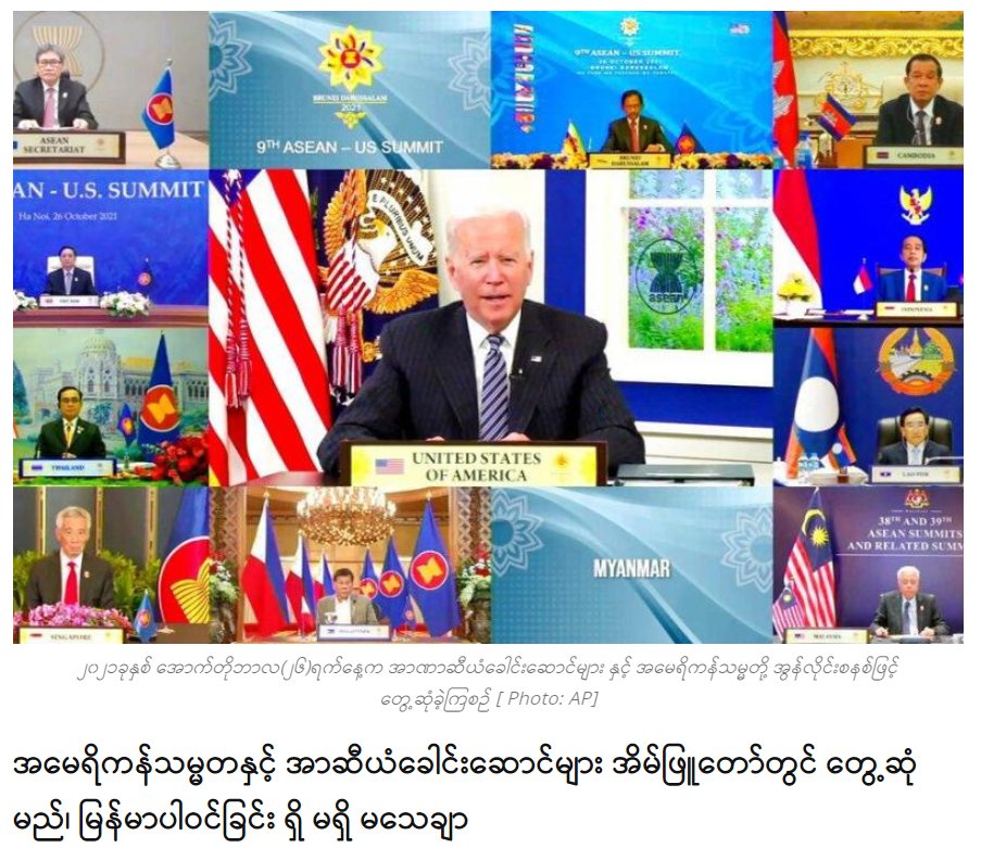 သမ္မတဂျိုးဘိုင်ဒန်က ယမန်နှစ် အောက်တိုဘာလအတွင်းကလည်း အာဆီယံခေါင်းဆောင်များနှင့် အွန်လိုင်းထိပ်သီးဆွေးနွေးပွဲ ပြုလုပ်ခဲ့သေးသည်။