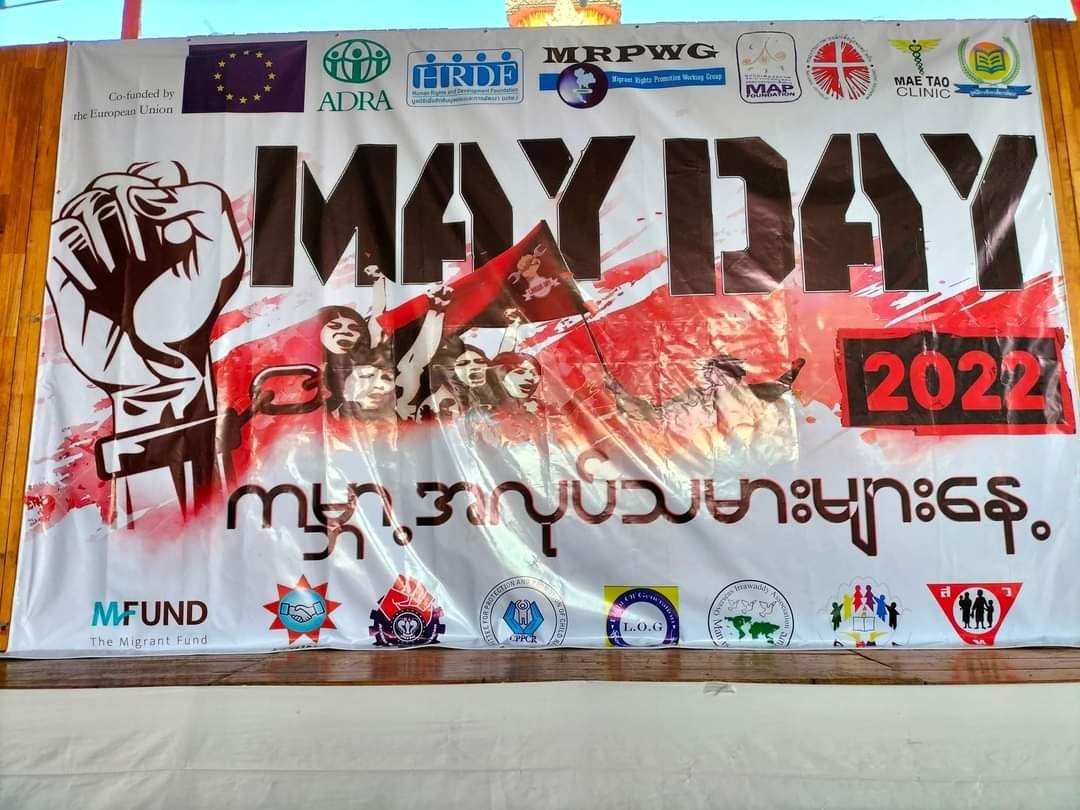 မေလ ၁ ရက် မှာကျရောက်တဲ့ ၁၃၂ ကြိမ်မြောက် အပြည်ပြည်ဆိုင်ရာအလုပ်သမားနေ့ (မေဒေး )တွင် ထိုင်း မြန်မာ နယ်စပ်မြို့တစ်မြို့ဖြစ်သော တာခ်ခရိုင် မဲဆောက်မြို့တွင် မှီတင်းနေထိုင် အလုပ် လုပ်ကိုင် နေသည့် ရောက်မြန်မာရွှေ့ပြောင်းလုပ်သား ၁၀၀ ဦးကျော်နှင့် မဲဆောက်ဒေသတွင်ရှိသော လူထု အခြေပြု အရပ်ဖက်အဖွဲ့အစည်းများ အစိုးရမဟုတ်သော အဖွဲ့အစည်းများ တို့နှင့် ဖွဲ့စည်းထားသော MRPWG ကွန်ရက်မှ ဦးဆောင်ပြီး အပြည်ပြည်ဆိုင်ရာအလုပ်သမားနေ့ကို တာခ်ခရိုင် မဲဆောက်မြို့ မဲ့တောင်မိုင်ကျေးရွာတွင်းရှိ ဘုန်းတော်ကြီးတွင် နံနက် ၀၈:၃၀နာရီမှမွန်းလွဲ ၁၂:၃၀ အထိကျင်းပပြုလုပ်ခဲ့ကြပါသည်။