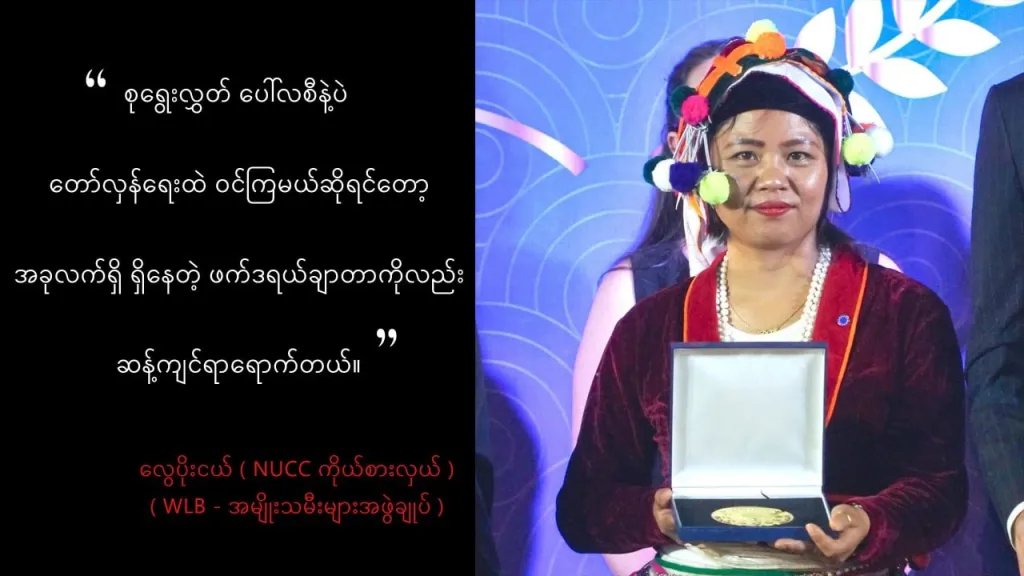 ဆိုတော့ ကျွန်မတို့ရဲ့ အိပ်မက်ဖြစ်တဲ့ တိုင်းရင်းသားတန်းတူရေး၊ ကိုယ်ပိုင်ပြဋ္ဌာန်းခွင့်ရရှိရေး၊ ကျွန်မတို့ အမျိုးသမီးတွေ ဆိုလို့ ရှိရင်လည်း ပုံစံခွက်ထဲမှာ သွင်းနေတဲ့ လူမှုအသိုင်းအဝိုင်းတွေ ပပျောက်နိုင်အောင် အဲဒီလိုမျိုး ခွဲခြား ဆက်ဆံမှုတွေ မရှိအောင် ကျွန်မတို့က ဖက်ဒရယ်ပြည်ထောင်စု ဒါမှမဟုတ် ငြိမ်းချမ်းတဲ့ နိုင်ငံရေး ပြဿနာတွေကို ဖြေရှင်းပြီးတော့ ငြိမ်းချမ်းတဲ့ Society တစ်ခုကို တည်ဆောက်နိုင်မှသာလျှင် ကျွန်မတို့က တကယ်စစ်မှန်တဲ့ ငြိမ်းချမ်းရေးကို ရလွယ်မှာဖြစ်တယ်။